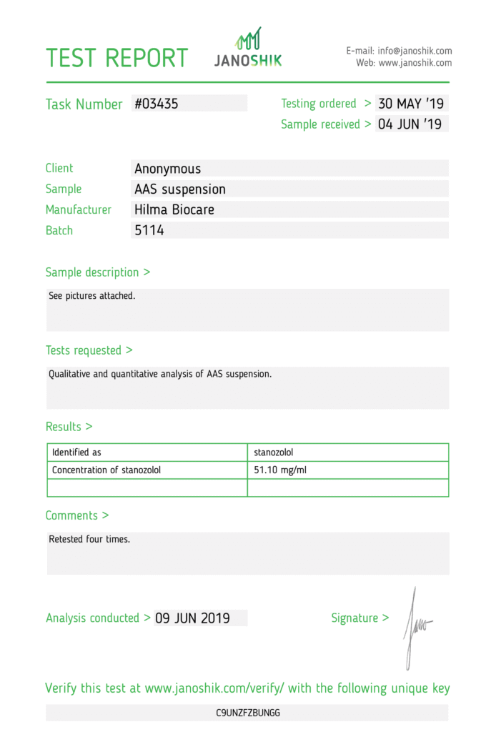Результат лабораторного тестирования препарата