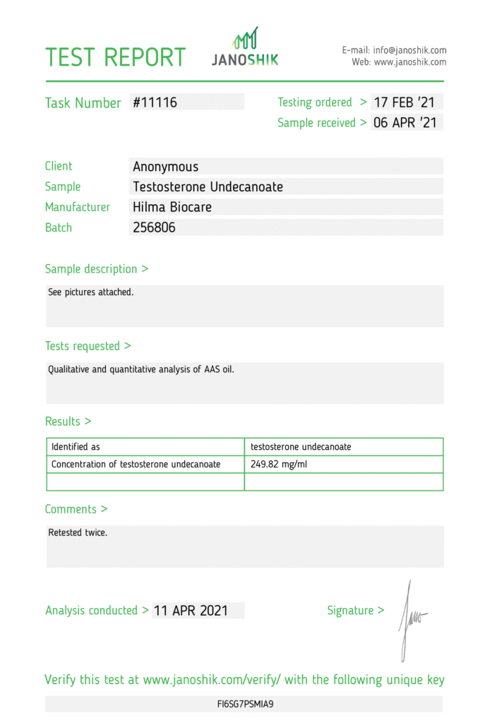 Характеристики Тестостерона Ундеканоата: